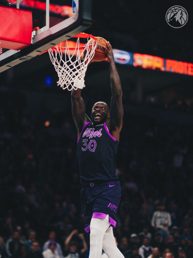 森林狼队首发阵容:迪文琴佐、爱德华兹、麦克丹尼尔斯、兰德尔、戈贝尔