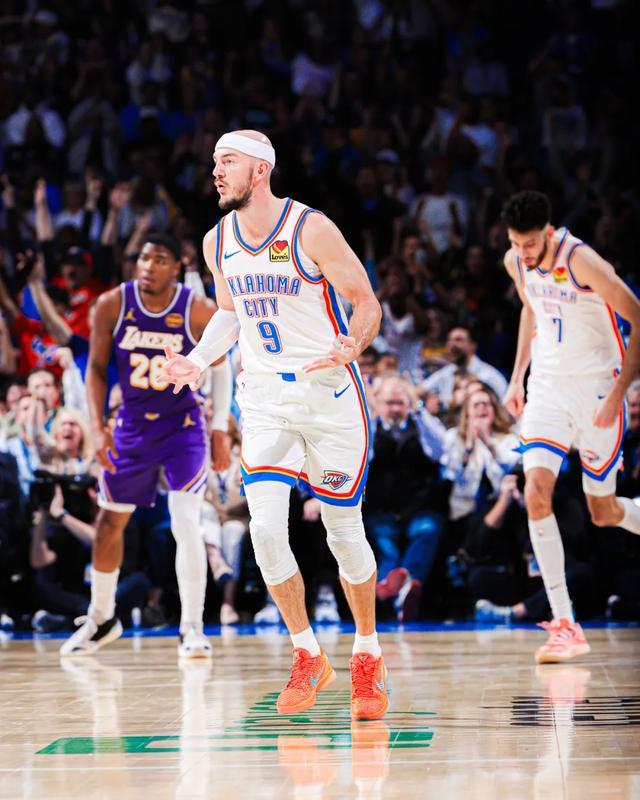 对阵湖人,雷霆半场就把湖人打花了。东契奇20中7仅得19分,失误4次;里夫斯12中4仅得13分,失误5次。掐死湖人的两个持球点,湖人被打得毫无还手之力。