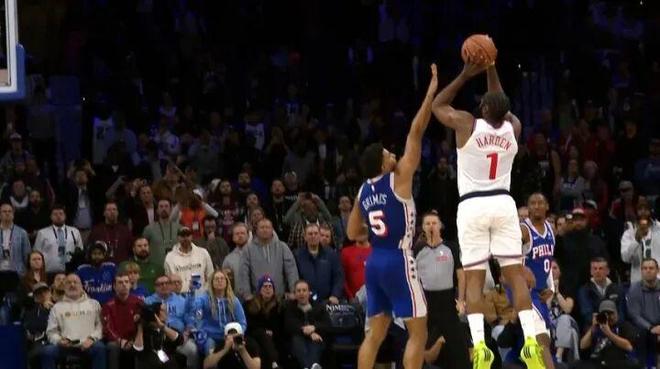 哈登示意打手犯规,手都摇出花了,裁判仍然无动于衷